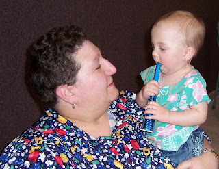 I love the pic of tender granmother and Granddaughter JUST before she Popped you on the head , ROTFLMBO!!! Look at her eyelashes , so long , and her hair is still really light like her Mommas.